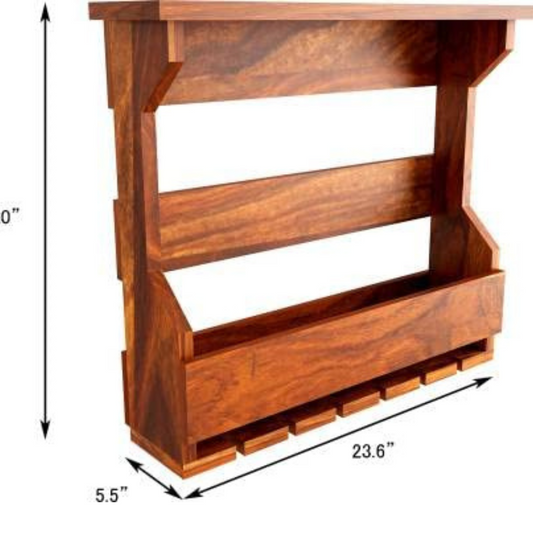 Carpentray Sheesham Solid Wood Wall Mounted Wine Rack Stemware Rack Glassware Holder Wine Accesorries Cork Storage Unit Shelf Organizer - Home Kitchen Dining Room Bar Décor - Chestnut