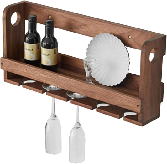 Carpentray Wooden Wall Mounted Wine Rack, Wine Storage Rack, Wine Bottle Holder with Glass Holder, Hanging Stemware Racks, Bar Wall Decor