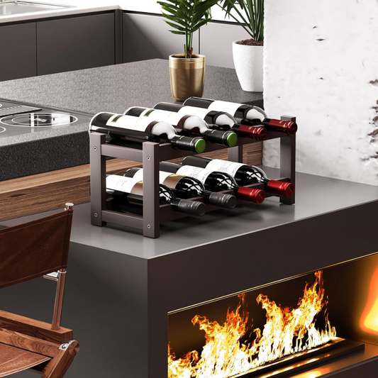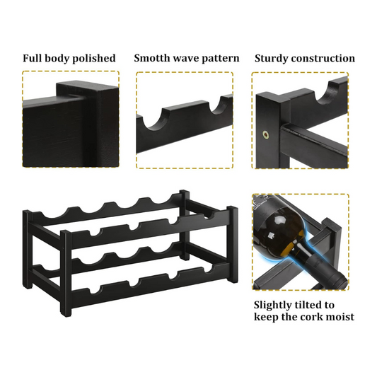 Carpentray Sheesham WoodWine Rack Freestanding 8 Bottle 2 Tier Bamboo Wine Racks Countertop Cabinet Wine Holder Wine Storage Shelf for Kitchen, Bar, Pantry, Wine Cellar, Countertop Black (16.85 L x 9.25W x 7H)
