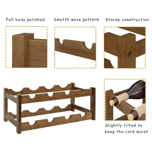 Carpentray Wine Rack Storage, 4 Tier Wine Racks Countertop, Wine Rack Freestanding Floor Wine Holder Cabinet for Kitchen, Bar, Pantry, Wine Cellar, Basement,Study (16.85 L x 9.25W x 17.24H)