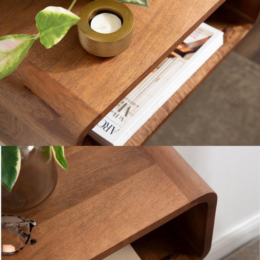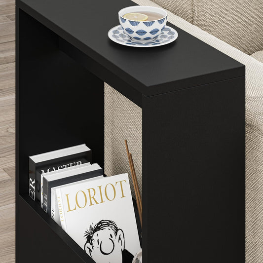 Carpentray Side Table Tray with Magazine Rack for Living Room and Office
