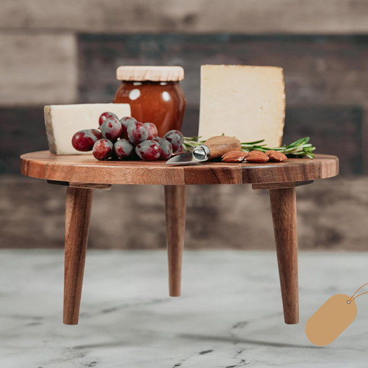 Carpentray Wooden Round Footed Serving Board - Pedestal Riser Cake Stand with Removable Legs - Charcuterie Tray Cheese Bread Fruit Vegetable Platters - Plant Holder Set 12 X 6 inches