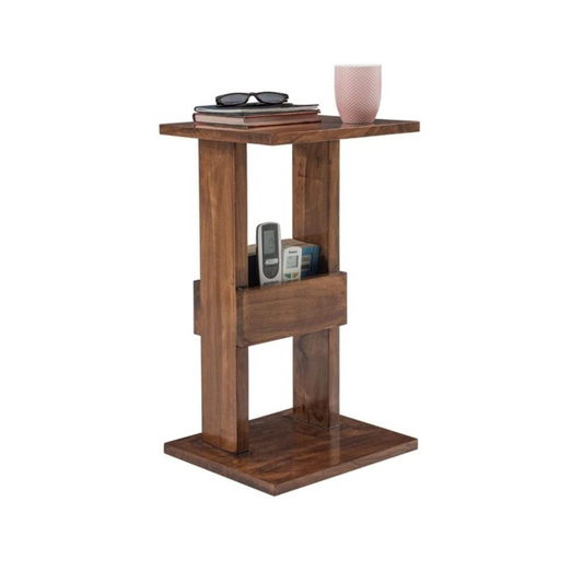 Carpentray Side Table Tray with Magazine Rack for Living Room and Office