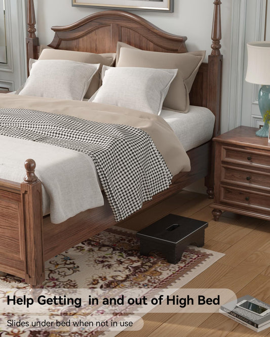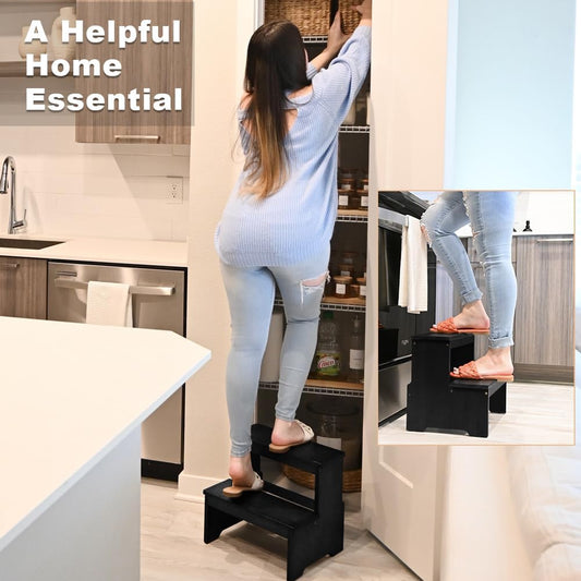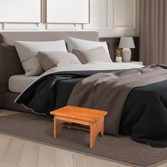 Carpentray Two Step Stool for Adults and Kids, Bed Stepstool with Anti-Slip Bottom, Heavy Duty for Kitchen, Bathroom, Bedside Step Stool, Wooden Step Stairs 350 lbs Capacity
