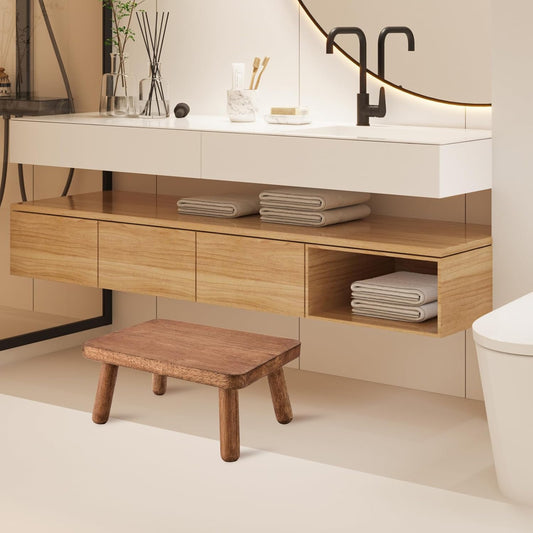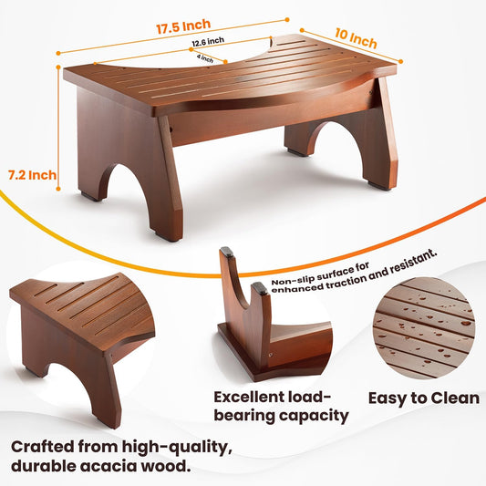 Carpentray Wooden Toilet Stool for Bathroom Adults - 7.2" Squatting Toilet Stool for Kids - Pooping Stool Squat with Anti Slip Layer - Bathroom Stools for Sitting/Travel (Acacia Wood)