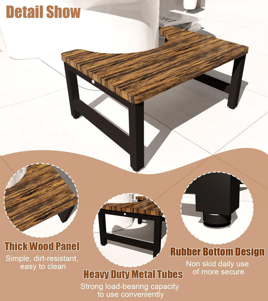 Carpentray Squatting Toilet Stool, Wood Bathroom Poop Stool for Adults, Portable Wooden with Metal Potty Stool Anti-Slip,Adults and Elders