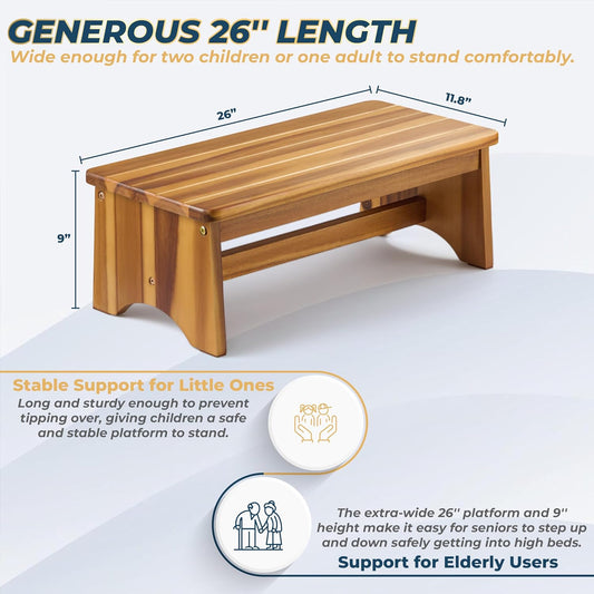 Carpentray 26 inch Long Wooden Step Stool, Heavy Duty One Step Stool for Adults and Seniors, Holds Up to 550 lbs, Reinforced Cross Bar, Non-Skid Surface, Multipurpose Use for Kitchen, Bathroom, Bedroom