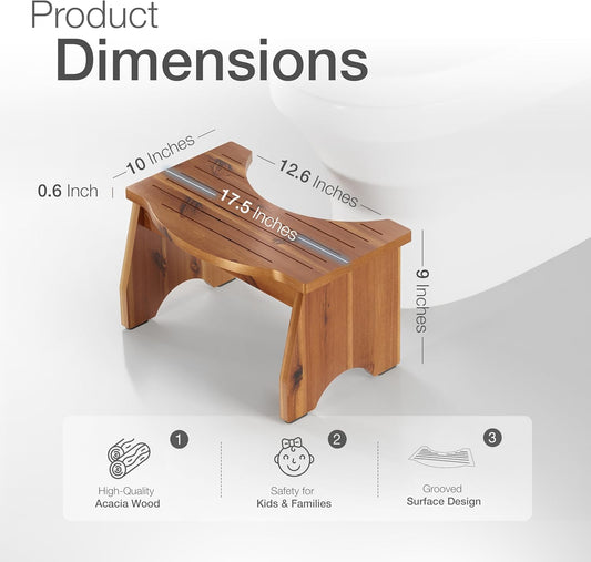 Carpentray Acacia Poop Stool for Bathroom Adults - Squatting Toilet Stool for Kids - Pooping Stool Squat with Anti Slip Layer - Bathroom Stools for Sitting/Travel (Acacia Wood 9 Inch Height)