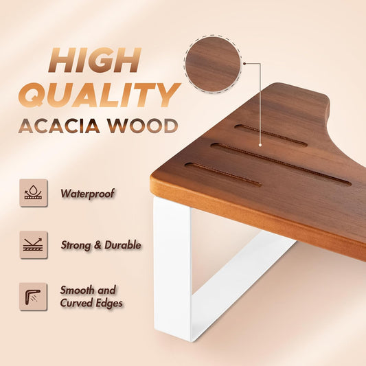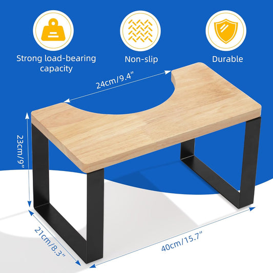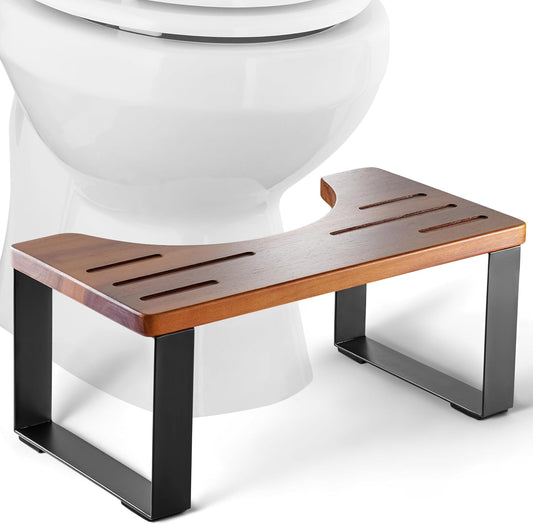 Carpentray Poop Stool, Acacia Wood Toilet Stool with Strong Steel Frame for Potty Training, 7 Inch Bathroom Stool, Durable/Sturdy Stool for Adults with Non-Slip