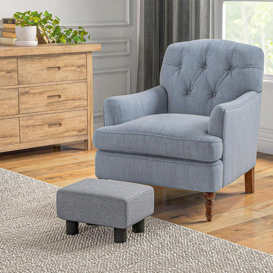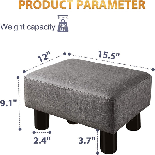 Carpentray Ottoman Foot Rest, Small Foot Stool with Linen Fabric Upholstery and Plastic Legs, Cube Ottoman for Living Room, Gray