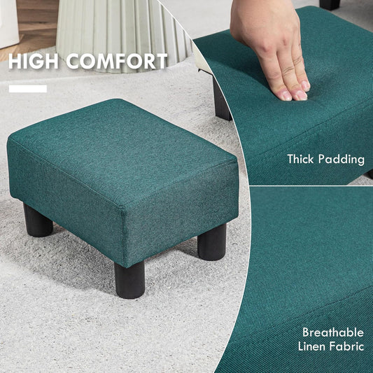 Carpentray Ottoman Foot Rest, Small Foot Stool with Linen Fabric Upholstery and Plastic Legs, Cube Ottoman for Living Room, Green