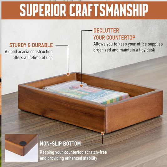 Carpentray Letter Trays & Stacking Supports Acacia Wood Desk Document, File Folder, Magazine Holder Tray (14" x 11" x 2")