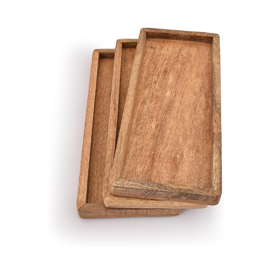 Carpentray Mango Wood Serving Platter with Raised Edge -Set of 3 for Display Fruit Snacks Appetizer Sushi Food Decorative (30.48cm x 12.7cm x 1.90cm)