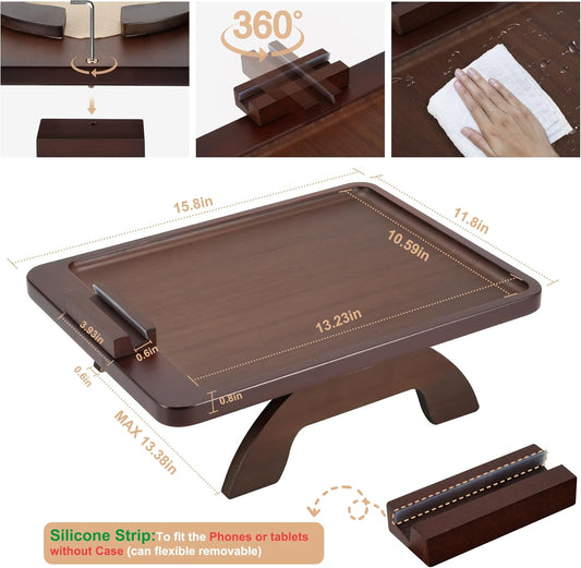 Carpentray Luxury Couch Arm Tray, Sofa Arm Tray with 360° Rotating Phone Holder,Couch Arm Table,Sofa Armrest Tray