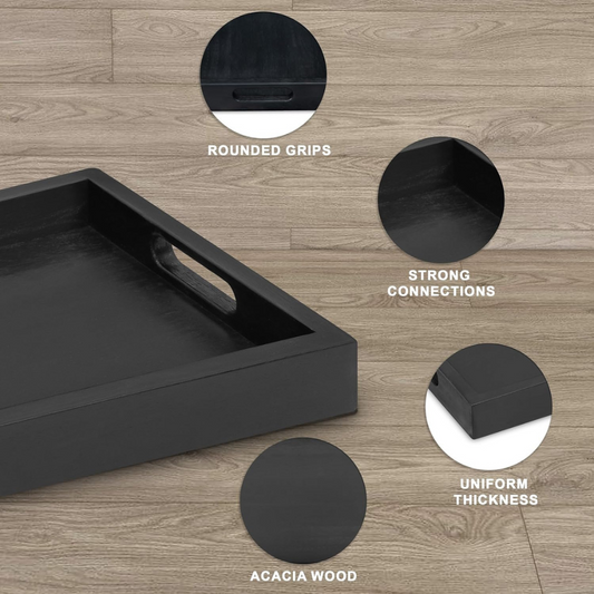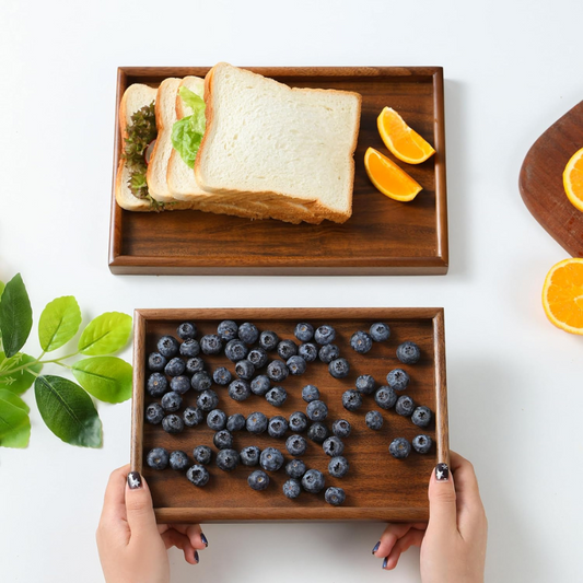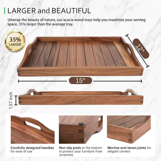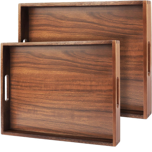 Carpentray Wood Serving Tray Set (2 Sizes: 15x11 & 13.6x9.6 Inch)