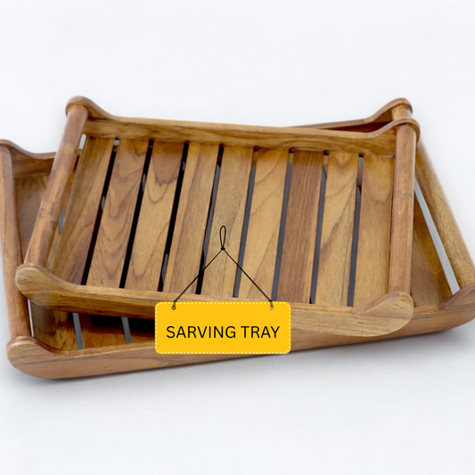 Carpentray Set of 2 Romper Teak Wood Rectangular Serving Tray for Home/Kitchen