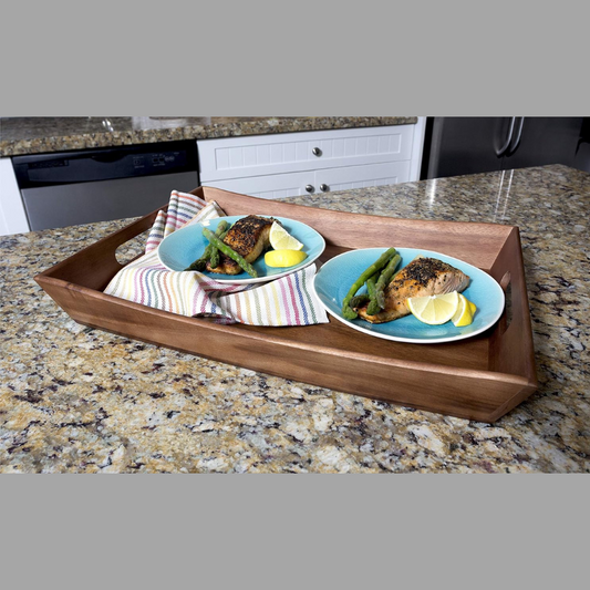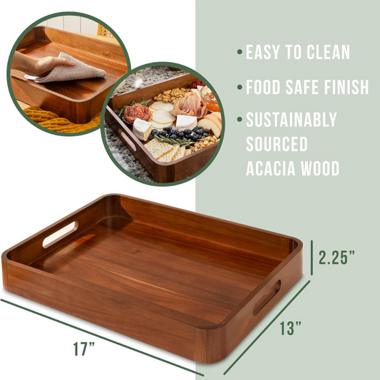 Carpentray 17 Inch Acacia Wood Serving Tray with Handles - Large Wooden Tray