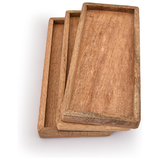 Mango Wood Serving Platter with Raised Edge -Set of 3 (12" x 5" x 0.75")