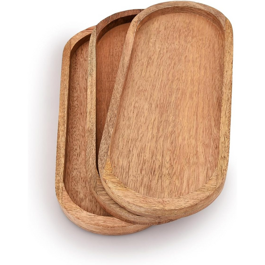 Carpentray Mango Oval Wood Tray Set of 3 Perfect for Food Holder (12" x 5" x 0.75")