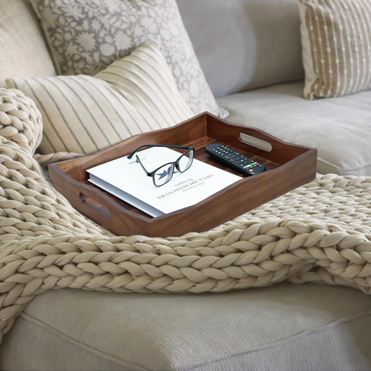 Carpentray Acacia Wood Serving Tray Wooden Serving Tray, 15" x 10" x 1.6"