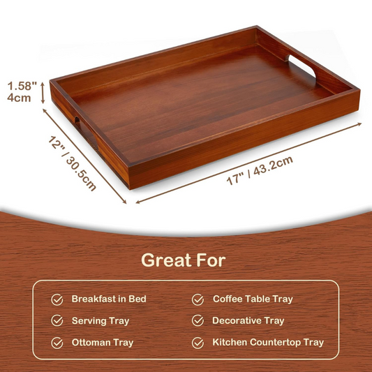 Carpentray Wooden Serving Tray with Handles 20 x 14 inch (Color Brown)
