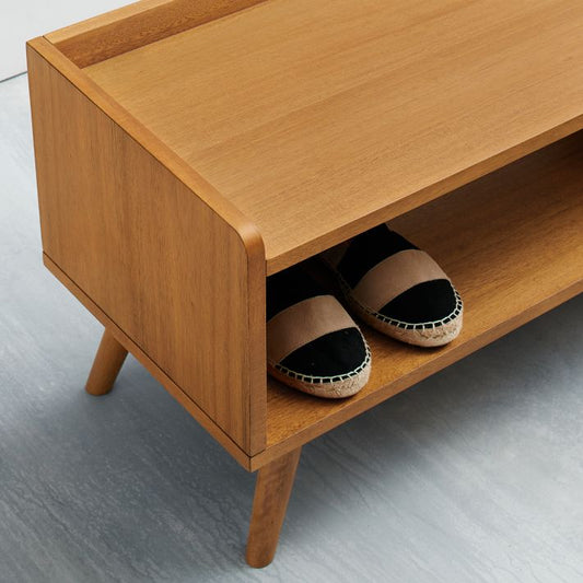 Carpentray Shoe Rack Entryway Shoe Storage Bench, End of Bed Bench with 2 Tier, 31.5'' Wooden Storage Ottoman Bench with Cushion for Living Room, Bedroom, Hallway (Beige)