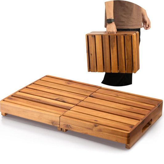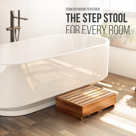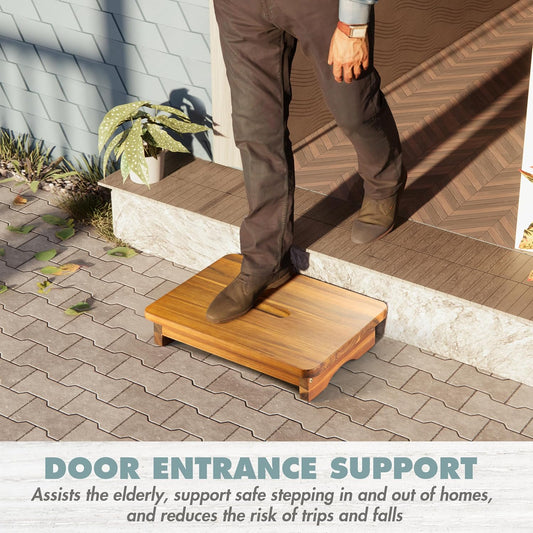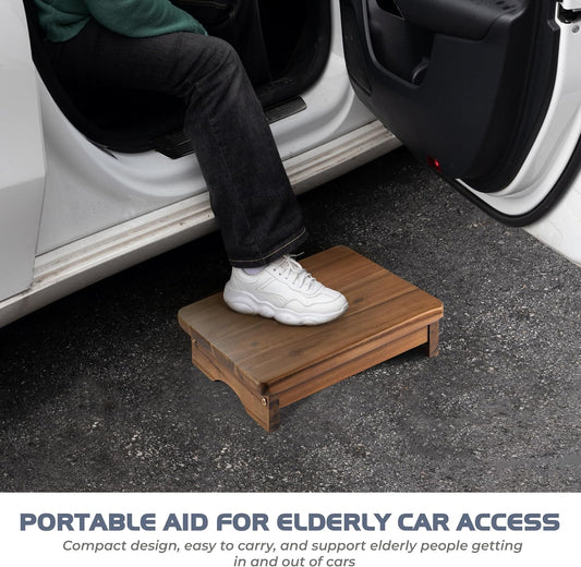 Carpentray 25in One Foldable Step Stool for Elderly - Acacia Wood High Riser Step Stool for Adults Kid - Wooden Mobility Stepping Stools