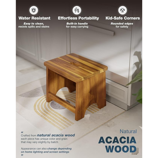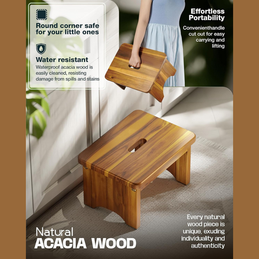 Carpentray 9'' Wooden Step Stool, Thickened Acacia Wood One Step Stool