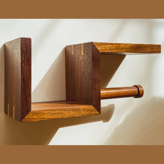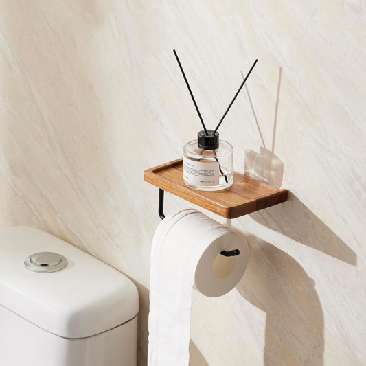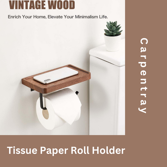 Carpentray Teak Wood Wall Mounted Toilet Paper Holder with Shelf for Restaurants, Hotels, Bathrooms and Washrooms.