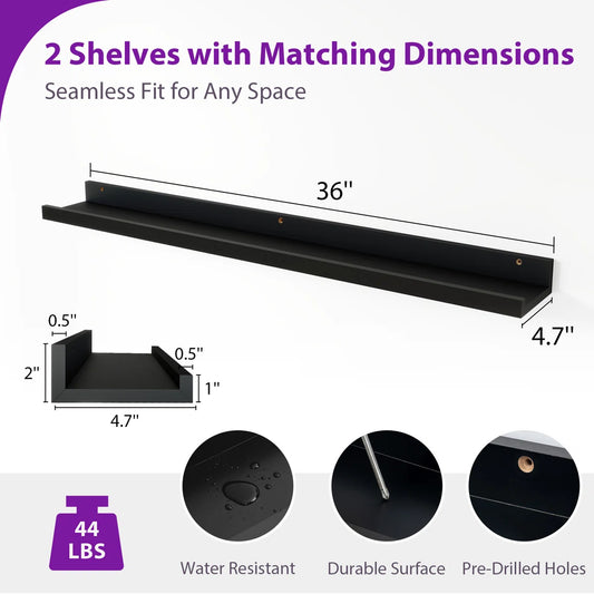 Carpentray 36 inch Long Set of 2 Wooden Wall Shelf (Black)