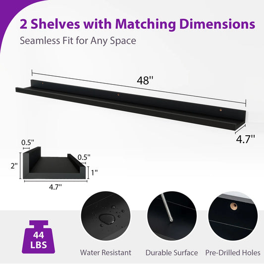 Carpentray 48 inch Long Set of 2 Wooden Wall Shelf (Black)