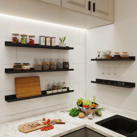 Carpentray Wooden Wall Shlef 4 Piece Floating Shelf (Set of 1 / Black)