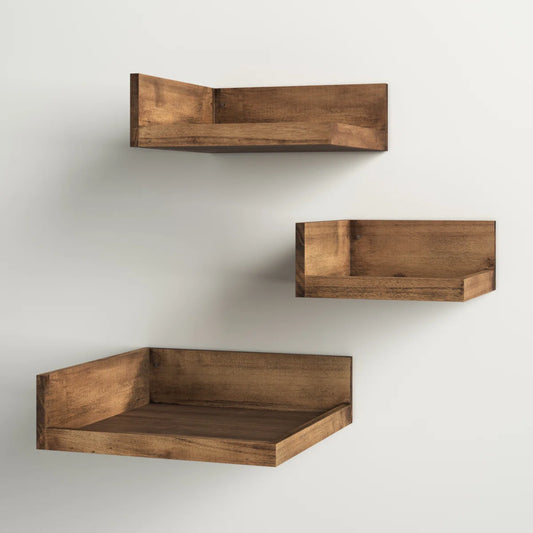 Carpentray Wooden Mini Wall Shelf Set of 3 (Brown)
